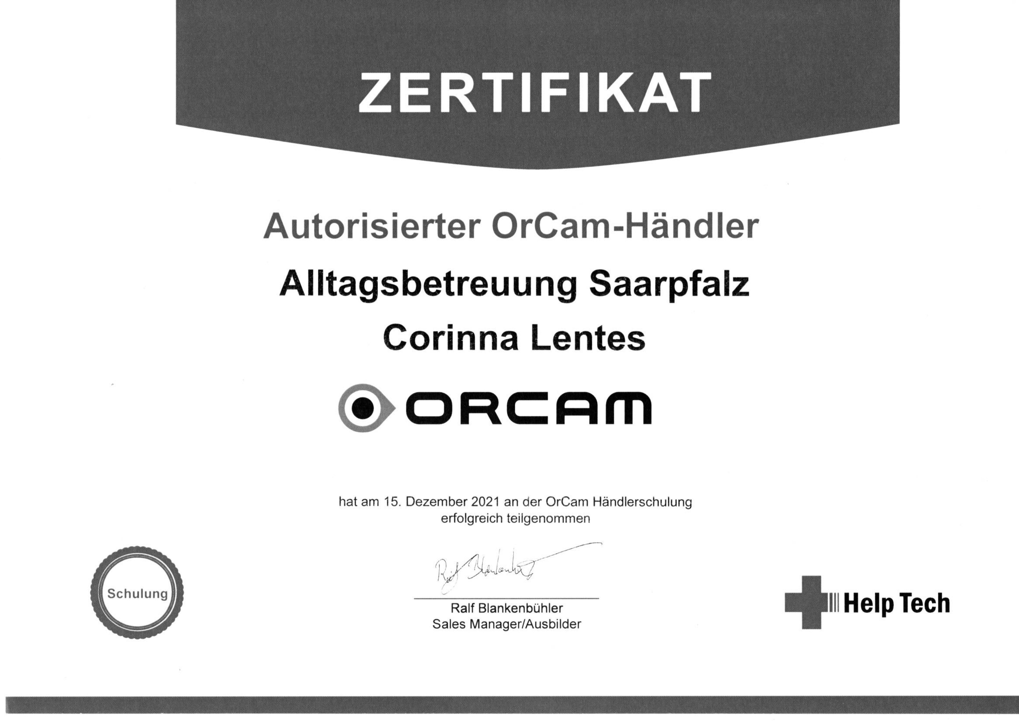 OrCam befindet. Dieser Bereich ist mit einem Sensor ausgestattet und reagiert auf